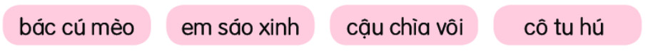 Những từ ngữ chỉ người được dùng để gọi các loài chim là: bác, em, cậu, cô