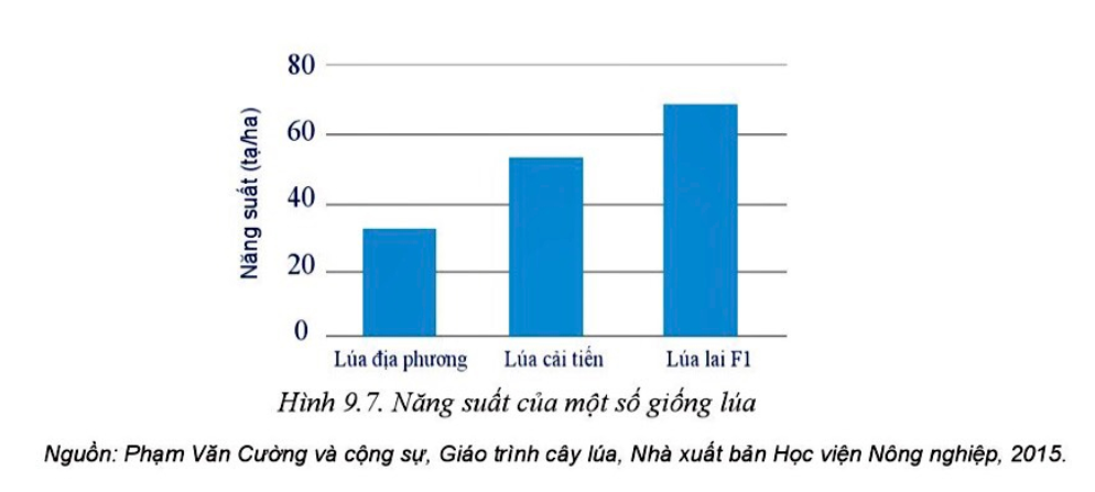 1. Hãy nhận xét về năng suất của các giống lúa trong Hình 9.7