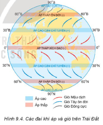Dựa vào kiến thức đã học về khí áp và gió trên Trái Đất, quan sát hình 9.4 SGK.