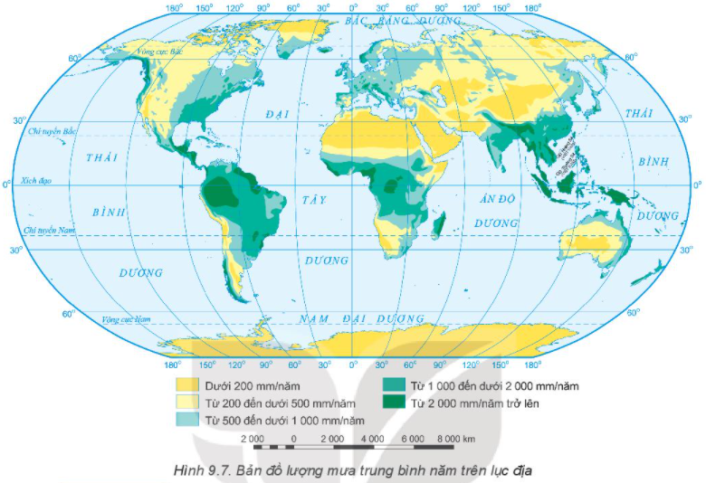 – Quan sát hình 9.7 (Chú ý màu sắc thể hiện lượng mưa).