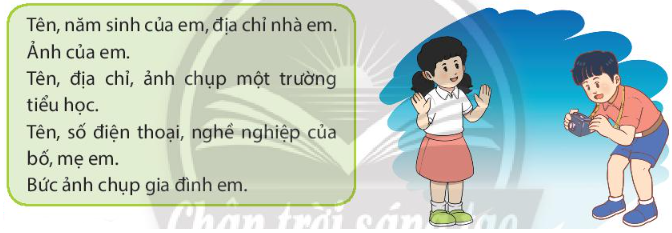 – Ảnh chụp gia đình, kế hoạch đi du lịch, địa chỉ nhà ở, giờ giấc sinh hoạt của gia đình em,… là thông tin gia đình.