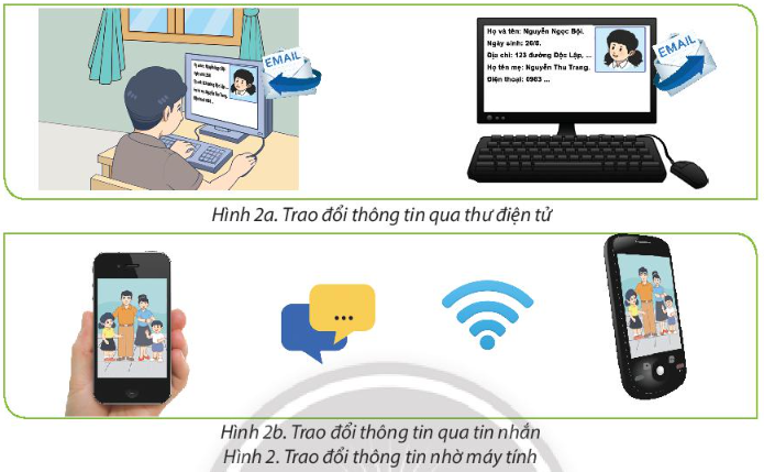 – Quan sát Hình 2 và cho biết thông tin cá nhân, gia đình có thể được trao đổi nhờ máy tính bằng cách nào?