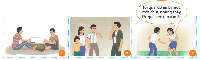 – Ảnh 3 – sử dụng thực phẩm bị mốc, ôi thiu => gây ngộ độc thực phẩm.