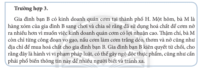 – Gia đình bạn B đã từ chối việc sử dụng hóa chất độc hại trong chế biến thực phẩm; đồng thời cảnh báo nguy hiểm cho mọi người xung quanh cùng biết.