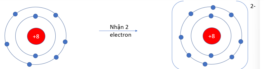 – Sơ đồ nguyên tử O nhận 2 electron vào lớp vỏ ngoài cùng