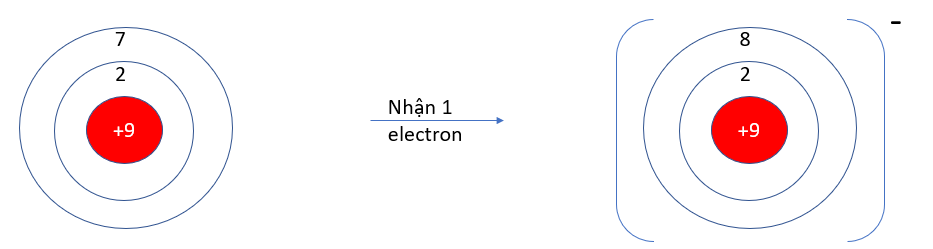 – Cấu hình electron F (Z = 9): 1s22s22p5 => Có 7 electron ở lớp ngoài cùng => Xu hướng nhận thêm 1 electron