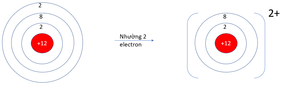 – Các kim loại có 1, 2 hoặc 3 electron ở lớp ngoài cùng có xu hướng nhường bớt toàn bộ các electron này để tạo thành ion dương