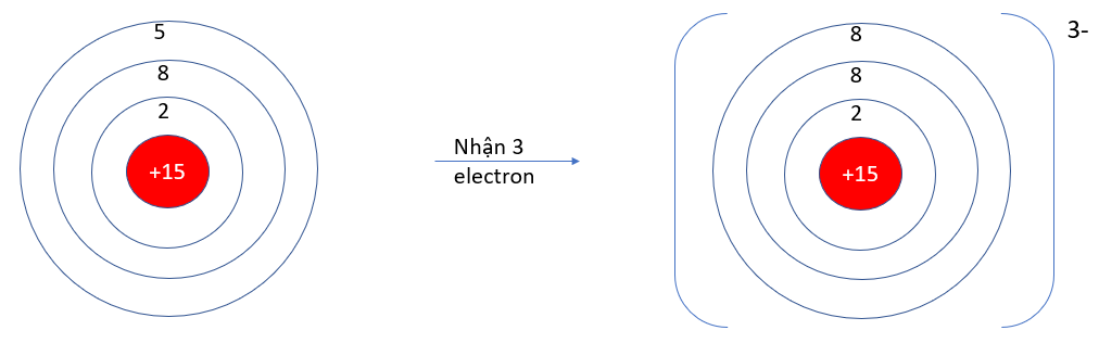 – P (Z = 15): 1s22s22p63s23p3 => Có 5 electron ở lớp vỏ ngoài cùng => Xu hướng nhận 3 electron