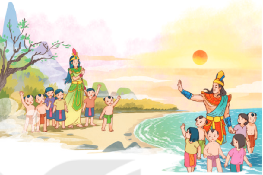 – Ta vốn nòi rồng ở miền nước thẳm, nàng là dòng tiên ở chốn non cao. Kẻ trên cạn, người dưới nước, tập quán khác nhau, khó mà ở cùng nhau lâu dài được. Nay ta đem năm mươi con xuống biển, nàng đưa năm mươi con lên núi, chia nhau cai quản các phương, khi có việc thì giúp đỡ lẫn nhau, đừng quên lời hẹn.