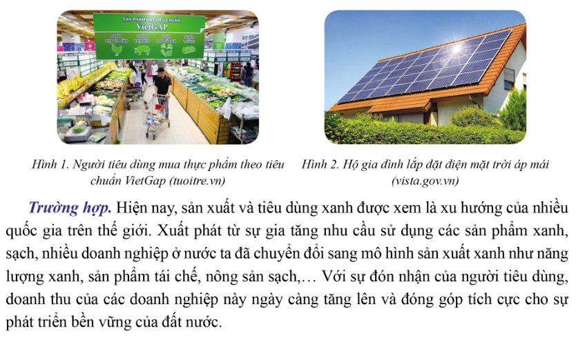 – Trường hợp 2: Phản ánh văn hóa tiêu dùng góp phần định hướng cho sản xuất và thay đổi phong cách tiêu dùng. Cụ thể: trong bối cảnh ô nhiễm môi trường ngày càng nghiêm trọng, người tiêu dùng có xu hướng ưu tiên sử dụng các sản phẩm thân thiện với môi trường; từ đó, các doanh nghiệp cũng thay đổi định hướng, tập trung sản xuất các sản phẩm có yếu tố “xanh” và”bền vững”.
