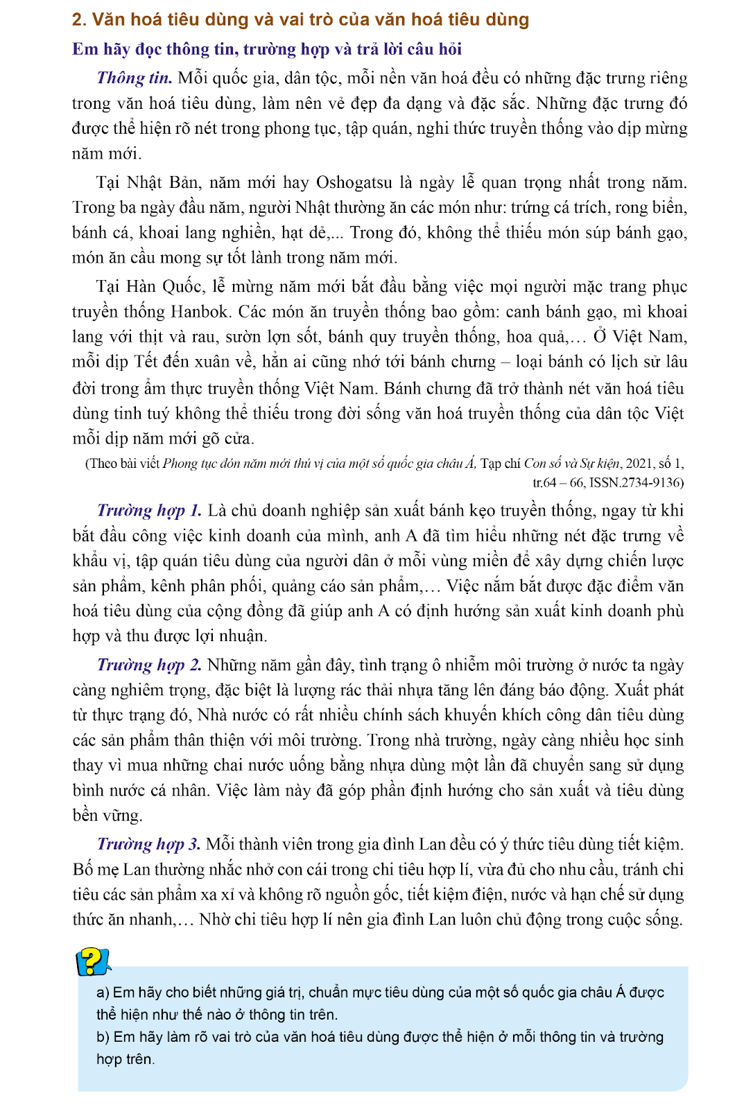 a. – Hình ảnh và đoạn thông tin phản ánh về đặc điểm văn hóa tiêu dùng Việt Nam có tính kế thừa những truyền thống của dân tộc, mang bản sắc văn hóa Việt Nam.