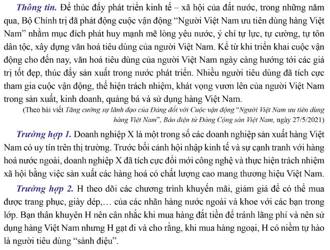 + Trường hợp 2: Bạn thân của bạn H đã có hành vi tiêu dùng phù hợp, góp phần thể hiện niềm tự hào và sự tôn vinh đối với các hàng hóa mang thương hiệu Việt Nam.