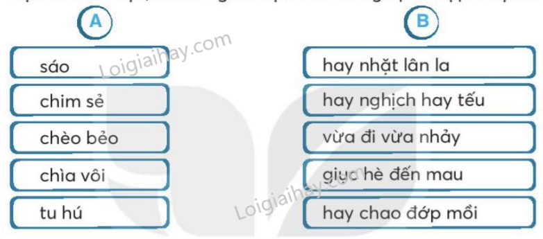 Dựa vào bài đọc, nối từ ngữ ở cột A với từ ngữ phù hợp ở cột B.