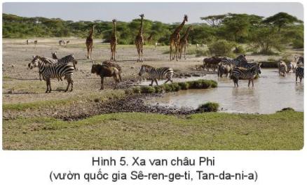 – Động vật: nhiều loài ăn cỏ (ngựa vằn, sơn dương, hươu cao cổ,…) và ăn thịt (sư tử, báo gấm,…).
