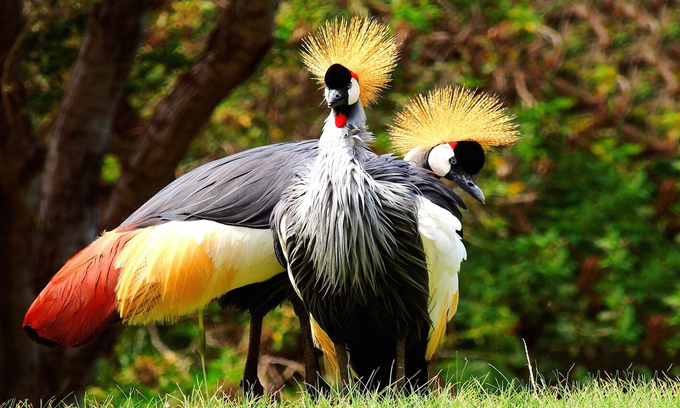 – Cao 1 mét và nặng hơn 4 kg, sếu vương miện xám là một loài chim lớn sinh sống ở thảo nguyên, sông và đầm lầy ở Đông Phi và Nam Phi.