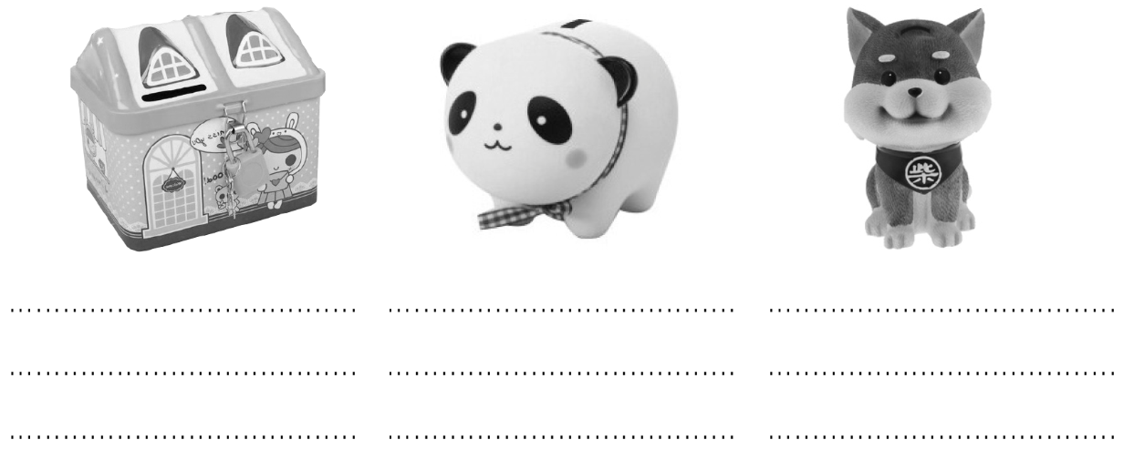 Bạn nhỏ mong bố mẹ mua cho đồ chơi gì. Bố mẹ hướng dẫn bạn nhỏ làm cách nào để mua được món đồ chơi đó. Bạn nhỏ dành dụm tiền như thế nào. Vì sao cuối cùng bạn nhỏ không muốn đập vỡ con heo đất. Gạch dưới những từ ngữ chỉ các bộ phận của con heo đất trong các câu sau. Viết vào dưới hình mỗi đồ vật những từ ngữ phù hợp chỉ các bộ phận của chúng.