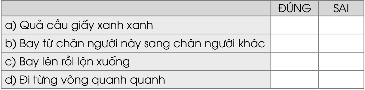 Bài thơ miêu tả quả cầu giấy bay lượn như thế nào? Đánh  dấu tích vào ô phù hợp: