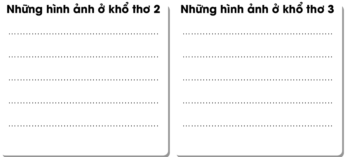Viết vào bảng sau những hình ảnh ở các khổ thơ 2 và 3 thể hiện niềm vui của các bạn học sinh khi gặp lại bạn bè, thầy cô: