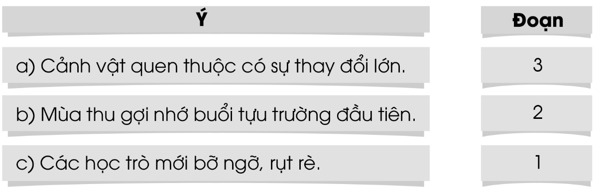Dựa vào gợi ý ở phần Đọc hiểu, hãy cho biết mỗi đoạn văn trong bài đọc nói về điều gì. Nối đúng: