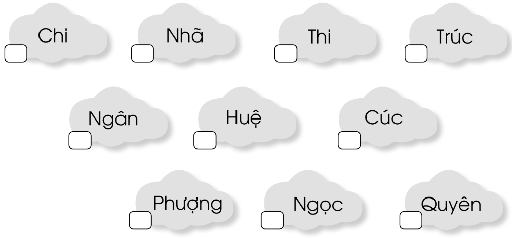 Đánh số thứ tự cho các tên riêng sau đây theo thứ tự trong bảng chữ cái: