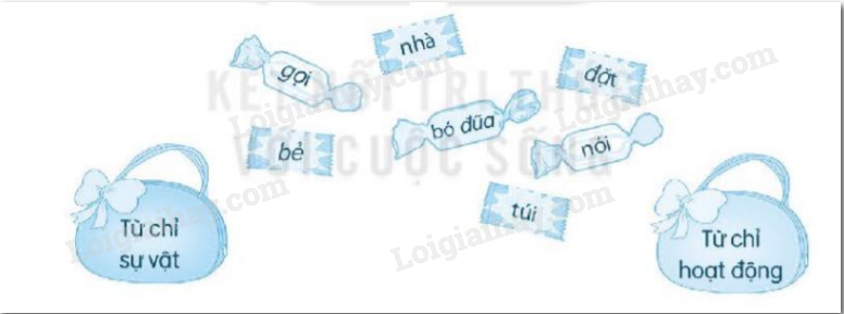 Em đọc các từ trong chiếc kẹo rồi nối vào túi chỉ nhóm từ tương ứng.