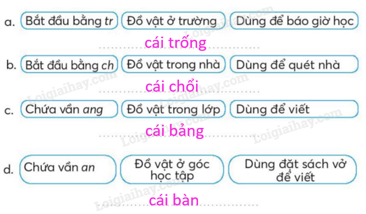 Em đọc kĩ các gợi ý và tìm từ ngữ chỉ tên các đồ vật.