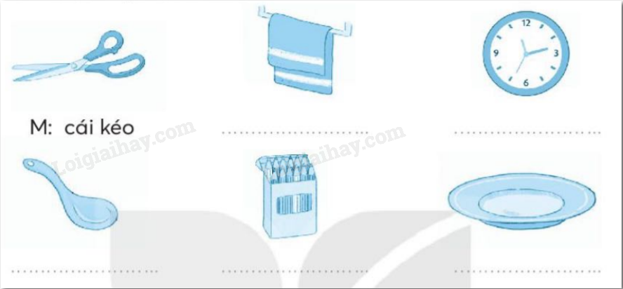 Viết từ ngữ gọi tên đồ vật vào chỗ trống.