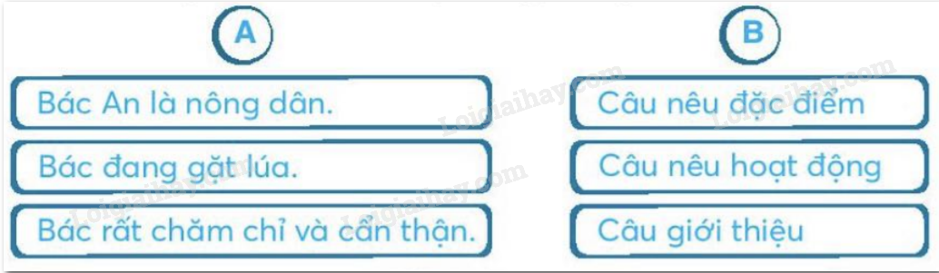 Nối câu ở cột A với kiểu câu phù hợp ở cột B.