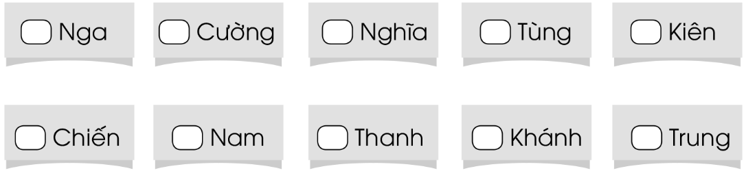 Đánh số thứ tự cho các tên riêng sau đây theo thứ tự trong bảng chữ cái.