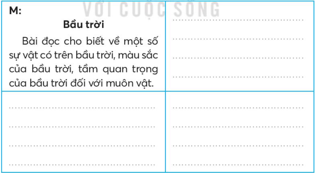 Em lựa chọn những bài đọc mà em yêu thích và dựa vào mẫu để hoàn thành bài tập.