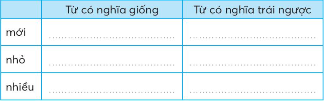 Tìm từ có nghĩa giống và từ có nghĩa trái ngược với mỗi từ dưới đây: