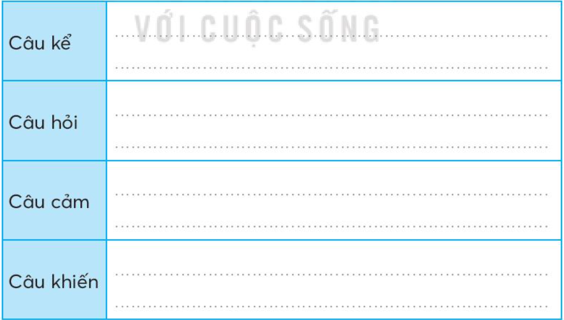 Dựa vào tranh dưới đây, đặt 4 câu: câu kể, câu hỏi, câu cảm, câu khiến.