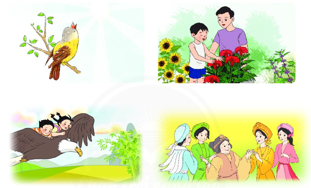 Câu 1: Nói tên bài em đã học phù hợp với mỗi bức tranh dưới đây: