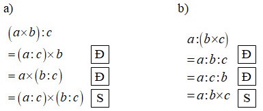 \(a:c + b:c = \left( {a + b} \right):c\,\,;\)                  \(a:c – b:c = \left( {a – b} \right):c.\)