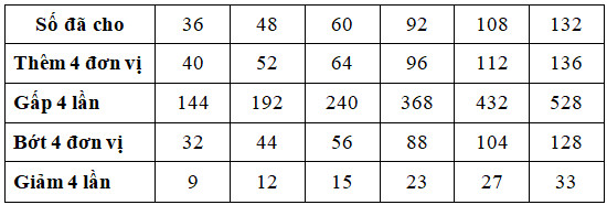 – Gấp 4 đơn vị : lấy số đó  ×  4 ;
