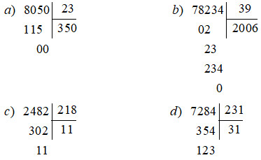 d) 7284 : 231 = 311           \( \Rightarrow \)    S