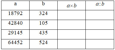 Thực hiện phép tính rồi điền kết quả vào bảng.