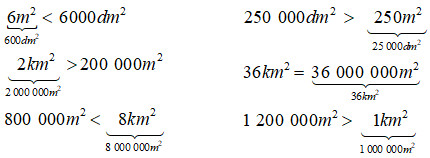 1m2 = 100dm2                                          1km2 = 1 000 000m2