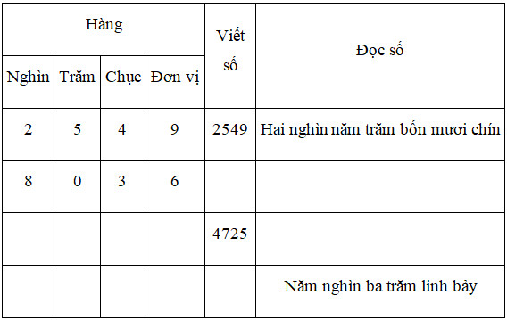 b) 4654 = 4000 + 600 + 50 + 4      (Đ)
