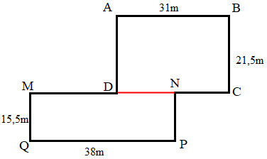 Chia mảnh đất thành 2 hình chữ nhật là ABCD và MNPQ.