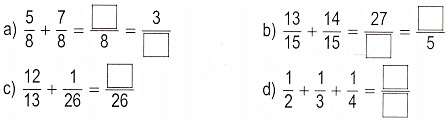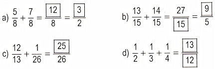 a) \(\dfrac{5}{8} + \dfrac{7}{8} = \dfrac{{12}}{8} = \dfrac{3}{2};\)
