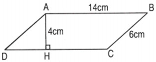 Bài 2. Cho hình bình hành ABCD có AB = 14cm, BC = 6cm và chiều cao AH = 4cm (như hình vẽ). Hãy tính chu vi và diện tích của hình bình hành ABCD.
