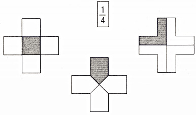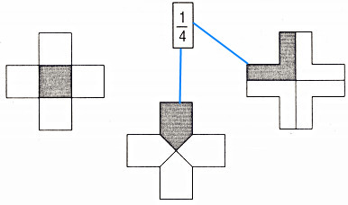Câu 3. Nối hình vẽ đã tô màu \(\dfrac{1}{4}\) hình đó với phân số \(\dfrac{1}{4}\).
