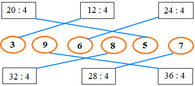 Nhẩm lại bảng chia 4 để tìm kết quả của mỗi phép chia, sau đó nối phép tính với kết quả của phép tính đó.