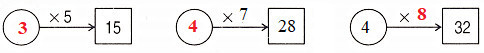 a) \(x\) × 3 = 12                   b) 2 × \(x\) = 14                    c) \(x\) × 4 = 36