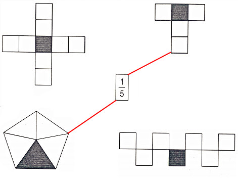 Câu 2. Nối hình vẽ đã tô màu \(\dfrac{1}{5}\) hình đó với phân số \(\dfrac{1}{5}\).