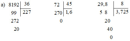 a) 8192 : 36                             72 : 45                           29,8 : 8                           \(\dfrac{2}{3}:\dfrac{5}{9}\)