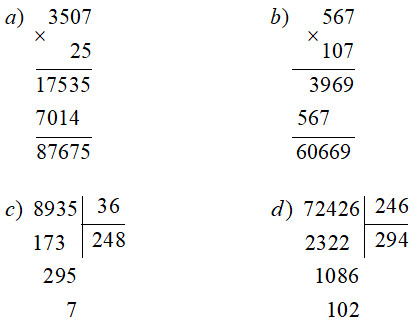 c) 8935 : 36                                              d) 72426 : 246
