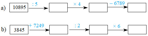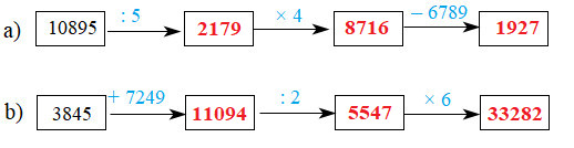 Thực hiện các phép tính theo chiều mũi tên, lần lượt từ trái sang phải.