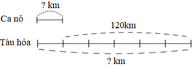 – Vẽ sơ đồ biểu diễn quãng đường đi bằng ca nô gồm 1 phần, quãng đường đi bằng tàu hoả gồm 6 phần bằng nhau.